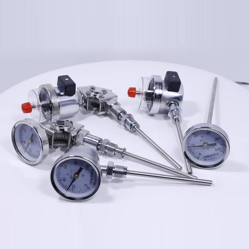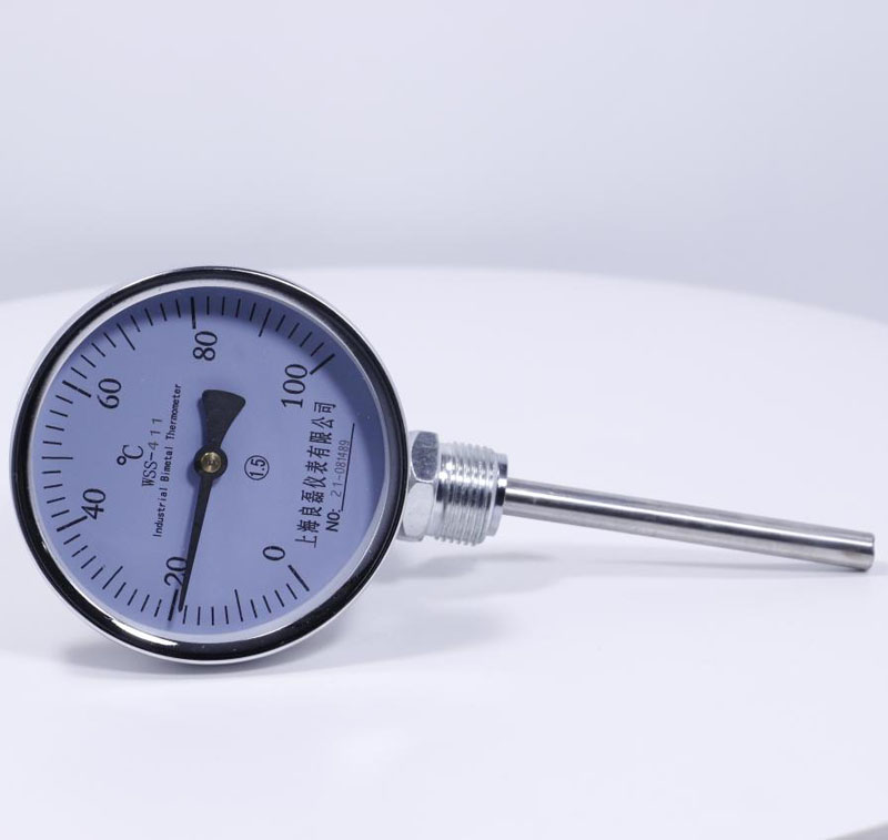 雙金屬溫度計廣泛用于化工、石油、冶金、紡織、醫藥、食品等部門熱門過程的設備和管道介質測溫。是用于測量中、低溫的現場檢測儀表,可以用來直接測量氣體和液體的溫度。具有無汞害、易讀數、牢固耐用等優點。雙金屬溫度計是利用繞制成螺旋管狀的雙金屬片一端被固定,另一自由端與指針連接,隨著溫度的變化而轉動,并帶動指針旋轉指示溫度的單針式指示溫度計。