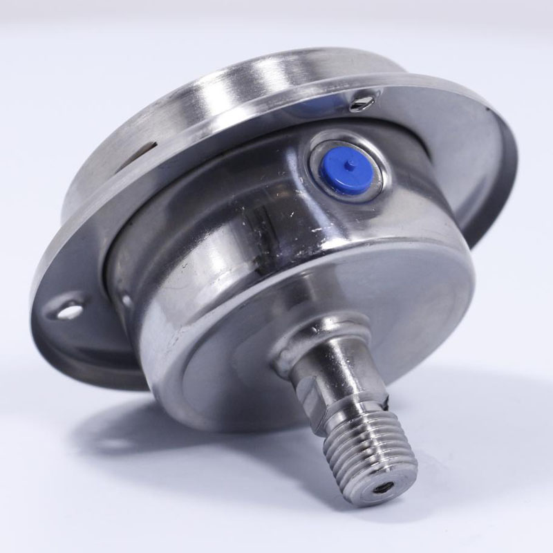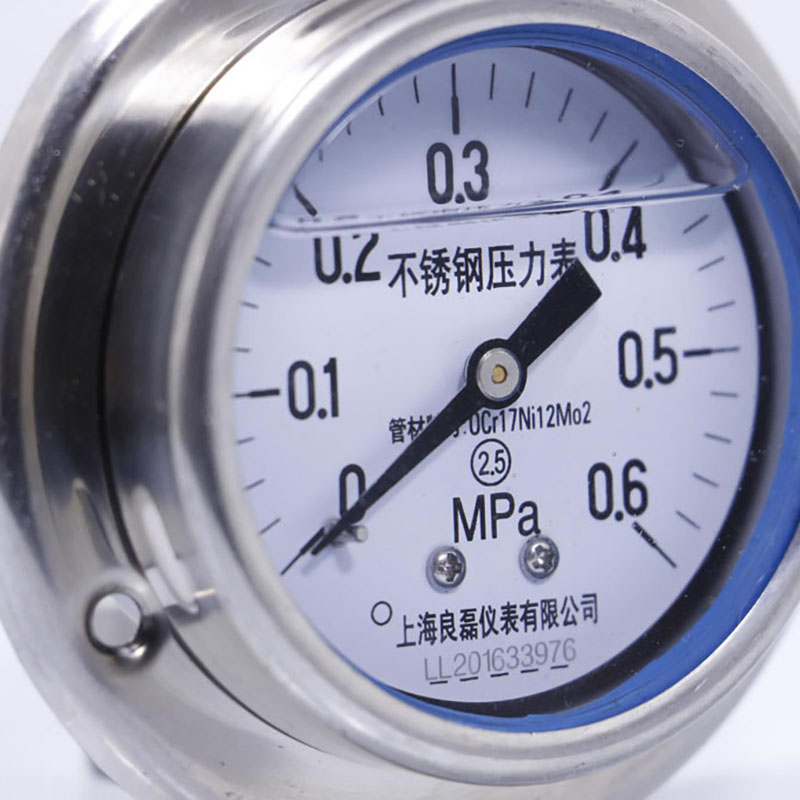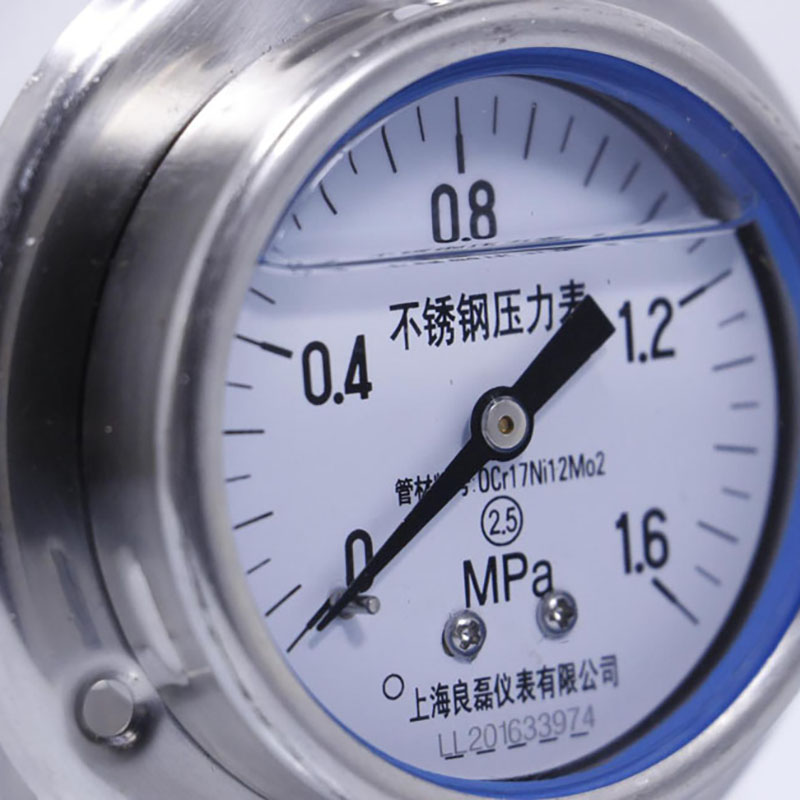 儀表由導壓系統(接頭、彈簧、螺釘等)、齒輪傳動、示數裝置(指針與度盤)和外殼(表殼、表蓋、表玻璃)組成。外殼為密封型結構,有效保護內部原件受環境影響和灰塵侵入。對于在表殼內充液(硅油或甘油)儀表,可以抗工作環境振動和減少介質壓力的脈沖抖動,起到很好的作用。
