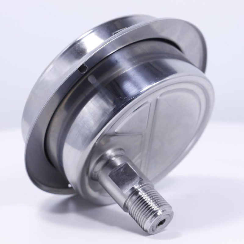 儀表由導壓系統(tǒng)(接頭、彈簧、螺釘等)、齒輪傳動、示數裝置(指針與度盤)和外殼(表殼、表蓋、表玻璃)組成。外殼為密封型結構,有效保護內部原件受環(huán)境影響和灰塵侵入。對于在表殼內充液(硅油或甘油)儀表,可以抗工作環(huán)境振動和減少介質壓力的脈沖抖動,起到很好的作用。